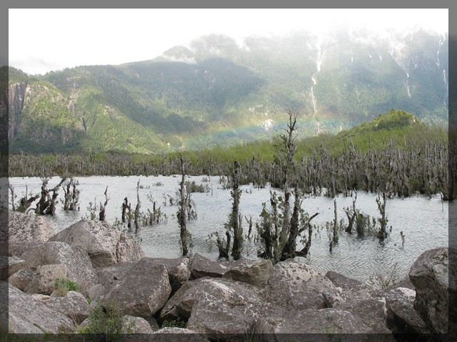 Abgestorbene Bäume kurz vor dem Lago Yelcho.