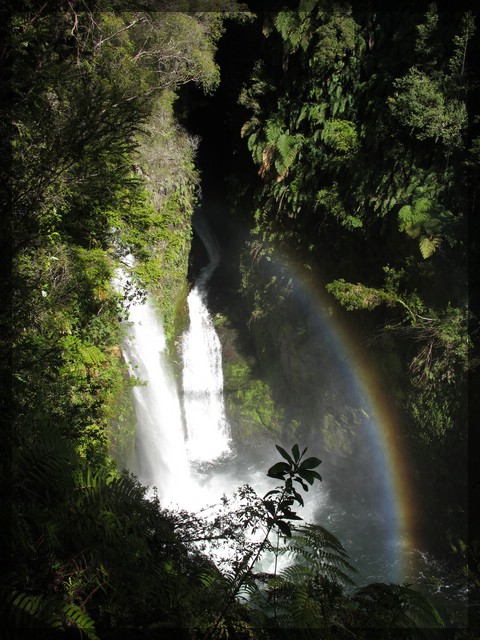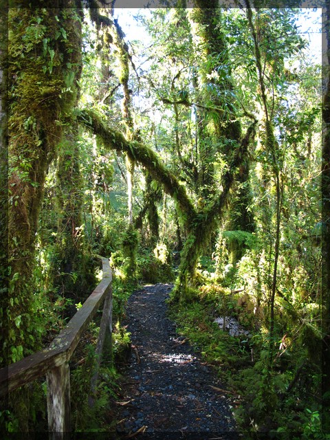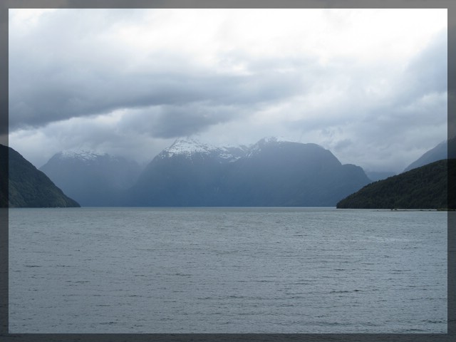 Es geht weiter. Wie schon angekündigt, verlassen wir heute die letzten Ausläufer des (von der Landschaft her noch recht mitteleuropäisch wirkenden) chilenisch-argentinischen Seengebiets und fahren zu den Regenwäldern der chilenischen Fjordlandschaft. Am vergangenen Tag der Reise haben wir ja schon dicke Wolken über den Anden hängen gesehen und daher machen die Regenwälder heute leider ihrem Namen alle Ehre...