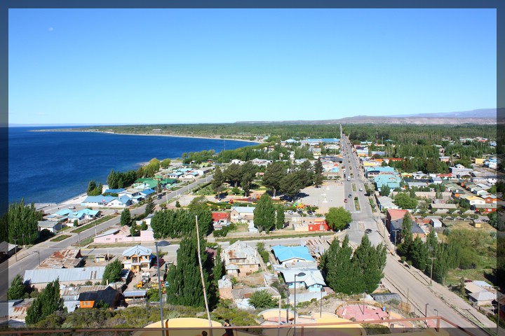 Blick auf Chile Chico.Wir checken zunächst in unserer vorgebuchten Lodge ein und schauen uns dann noch ein wenig in der Ortschaft um. Vom hiesigen Hafen könnte man mit der Fähre direkt nach Rio Ibanez fahren, nur wenige Kilometer von Villa Cerro Castillo entfernt. Aber wir wollen ja nach Argentinien und von dort aus weiter nach Süden. Bevor wir uns ein Restaurant zum Abendessen suchen, zählen wir unser Geld. Wir kommen zu dem Schluss, dass wir unbedingt unsere chilenischen Geldvorräte aufstocken müssen: Die nächsten Tage werden uns zwar nach Argentinien führen. Nach unserem nächsten Grenzübertritt nach Chile werden wir allerdings mehr oder weniger direkt in den Parque Nacional Torres del Paine fahren und so etwas wie Geldautomaten gibt es in diesem Park nicht. Also suchen wir den einzigen Automaten in Chile Chico und werden herb enttäuscht: Das Ding ist außer Betrieb. Während dem - wieder mal sehr leckeren - Abendessen wälzen wir Pläne: Morgen während den Schalterstunden bei der Bank vorbei schauen? Aber morgen ist Sonntag, haben da die Banken in Chile überhaupt geöffnet? Wir denken, dass dem nicht so ist, vor allem in irgendwelchen Käffern in Patagonien. Irgendwo in Argentinien Geld umtauschen? Oder auf de Fahrt in den Parque Nacional Torres del Paine einen kleinen Schlenker nach Süden einbauen, um dort irgendwo chilenisches Geld zu organisieren? Als wir nach dem Essen noch mal bei der Bank vorbei gehen, um nach den Öffnungszeiten zu schauen, ist die Erleichterung groß: Der Automat wurde in der Zwischenzeit repariert bzw. wieder aufgefüllt.