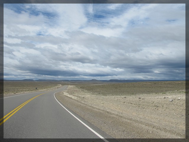 Wir stehen früh auf und frühstücken um acht Uhr. Das Pferd steht übrigens immer noch vor dem Fenster. Wir verabschieden uns von der Wirtin und verlassen diese schöne Unterkunft wieder. Das Wetter ist wieder recht gut, auf dem blauen Himmel zeigen sich lediglich vereinzelte Wolken. Außerhalb von Chile Chico verläuft die Straße zunächst ein kurzes Stück schnurgerade nach Osten, dann knickt sie um neunzig Grad nach Süden ab, und umfährt so das breite Delta des Rio Los Antiguos. Wir kommen zur chilenischen Grenzstation, einem nagelneuen und riesengroßen Gebäude, in dem sich außer den Grenzbeamten und uns niemand zu befinden scheint. Nach weniger als zehn Minuten sind wir auch schon aus Chile ausgereist und fahren weiter. Die Straße biegt wieder nach Osten ab, der Fluss wird überquert und weiter geht es Richtung Norden, zurück zum See und zur argentinischen Ortschaft Los Antiguos. Der See heißt hier übrigens Lago Buenos Aires, ist aber trotzdem noch der zweitgrößte See Südamerikas. Nach einigen Minuten befürchten wir schon fast, auf irgendeine verrückte Art und Weise die argentinische Grenzstation verpasst zu haben und nun in einem undefinierten Status unterwegs zu sein. Doch glücklicherweise bekommen wir doch noch Gelegenheit, uns die fehlenden Stempel abzuholen. Die Argentinier haben ihre Kontrollstation lediglich relativ nah an die Ortschaft gesetzt. Auch hier ist das Gebäude sehr neu und wir werden in Rekordzeit abgefertigt. Dieses Mal will auch niemand unser Gepäck durchwühlen. Wir bekommen keine argentinische Einreisekarte, auf explizite Nachfrage hin wird uns gesagt, diese sei nicht nötig. Wir erinnern uns, im Reiseführer davon gelesen zu haben, dass die Argentinier die Sache mit der Einreisekarte nicht ganz so streng sehen - ganz im Gegensatz übrigens zu den Chilenen. Christel, die Wirtin vom Club los Ulmos bei Pucon hat uns in düsteren Bildern ausgemalt, was passiert, wenn wir unsere chilenischen Einreisekarten verlieren. Dann hat sie ein Tesaband geholt, und unsere Karten im Pass festgeklebt, um möglichem Unheil vorzubeugen. Wir sind sehr auf die Ausreise aus Argentinien in ein paar Tagen gespannt und darauf was passiert, wenn wir mit Stempel aber ohne Einreisekarte dort auftauchen.