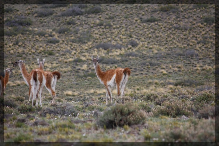 Sehr interessant ist auch, wenn man sich zu Fuß einer größeren Herde Guanacos nähert und dann von zwanzig oder mehr Tieren diesen neugierigen Blick zugeworfen bekommt...