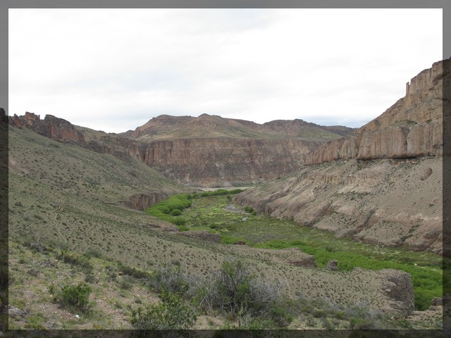 Blick über den Cañon Rio Pinturas auf die Rangerstation der Cueva de las Manos.