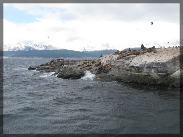 Viel weiter nach Osten bringt uns unser Schiff nicht. Es legt an der Mole der nicht weit entfernten Estancia Haberton an. Diese Farm wurde 1887 vom Missionar und Sprachwissenschaftler Thomas Bridges gegründet und ist damit die älteste Estancia auf Feuerland. Bridges kam 1871 nach Ushuaia und leitete dort 17 Jahre lang die Anglikanische Mission. Er setzte sich sehr für die Belange der Ureinwohner ein, konnte aber deren fast komplette Ausrottung durch Verfolgung und eingeschleppte Krankheiten nicht verhindern. Er quittiere frustriert seinen Dienst und zog mit seiner Familie auf die Estancia Haberton. Später wurde Bridges dadurch berühmt, dass er ein Wörterbuch der Sprache der Yamana-Indianer schrieb - mit 32000 Einträgen. Ein großer Teil der Passagiere geht an der Enstancia von Bord - für einen dreistündigen Aufenthalt inklusive Museumsbesuch. Anschließend geht es mit dem Bus zurück nach Ushuaia. Wir haben uns für die Rückfahrt mit dem Schiff entschieden und bleiben daher an Bord. Die Fahrt zurück nach Ushuaia verläuft ereignislos - an den Inseln mit Pinguinen, Kormoranen und Seelöwen wird vorbei gefahren. Während der Fahrt kommen wir mit einigen anderen Reisenden aus Deutschland ins Gespräch: Zwei alleinreisende Mädel, die nach ihrem Studium einen Monat eine Sprachschule in Buenos Aires besucht haben und nun als Backpacker quer durch Südamerika unterwegs sind. Und ein Pärchen etwa in unserem Alter, die nach einem Aufenthalt in Buenos Aires nach Ushuaia geflogen sind und heute Abend nach El Calafate weiter fliegen wollen. Sehr viel mehr Pläne haben sie für ihren Urlaub noch nicht und so folgt ein angeregter Austausch von Erfahrungen. Wir sind ein klein wenig neidisch, weil alle anderen noch einen längeren Aufenthalt in Südamerika vor sich haben, während wir ja schon ganz kurz vor unserer Rückreise stehen.