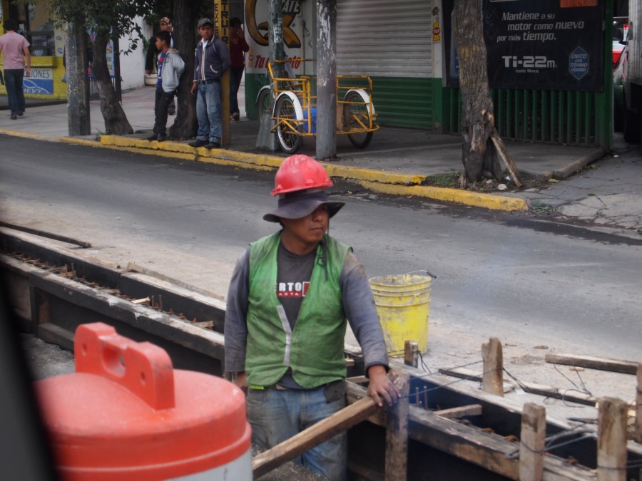 Die Fahrt zu den schwimmenden Gärten führte uns durch enge Seitengassen. Wir erhielten so einen kleinen Einblick in das Leben des Großstadtmolochs. Interessant die mexikanische Arbeitssicherheit.