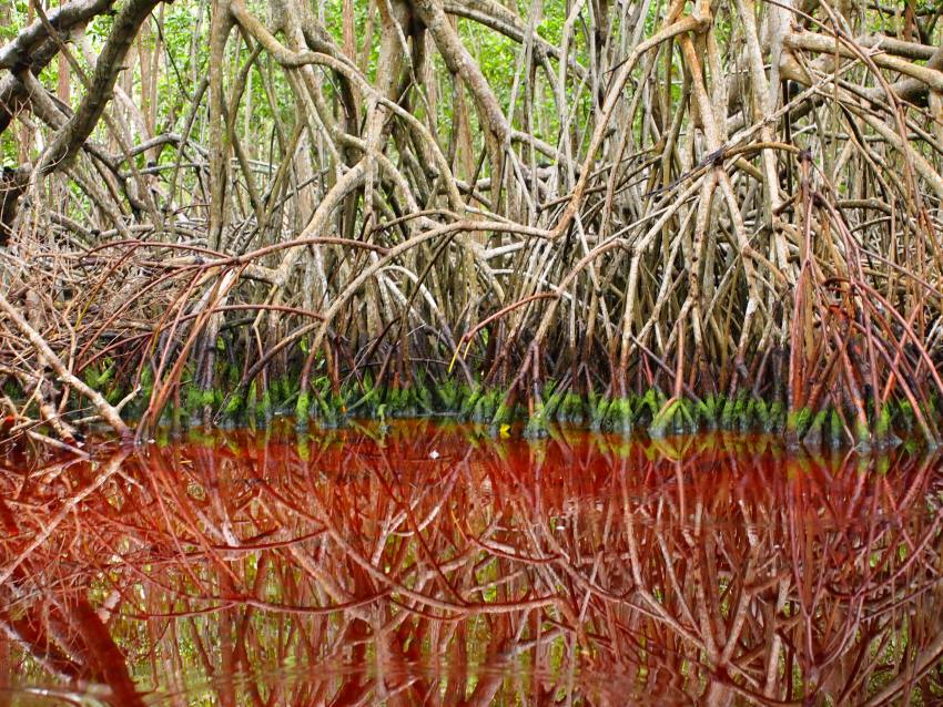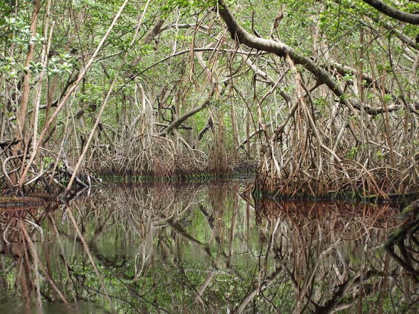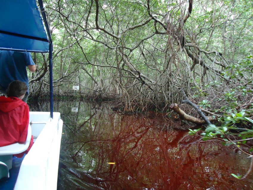 Plötzlich machte das Boot einen Schwenk und gleitete in einen schmalen Kanal mitten in die Mangrovenwälder hinein.