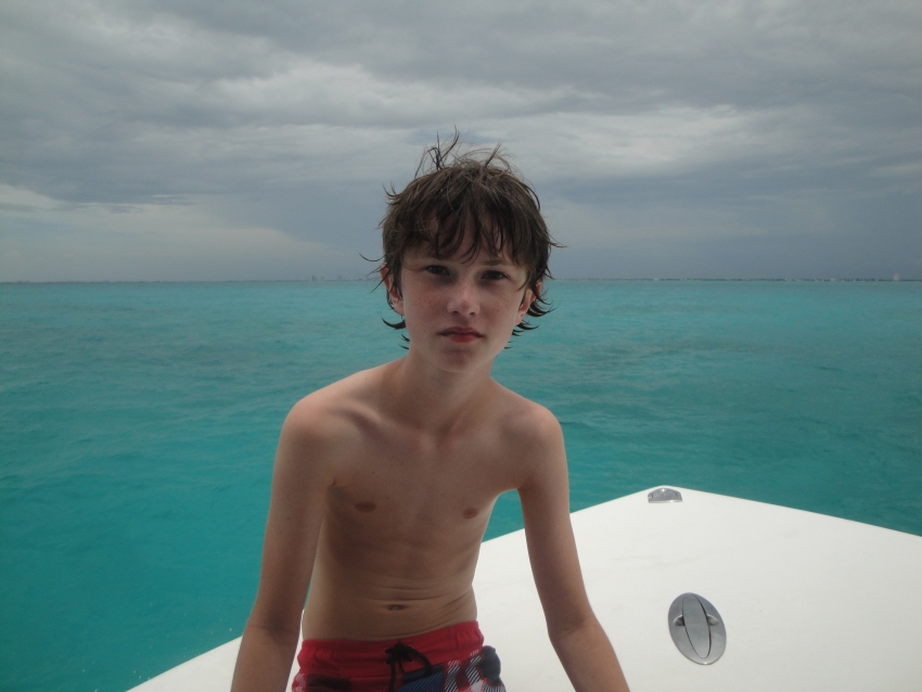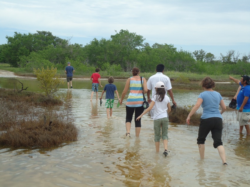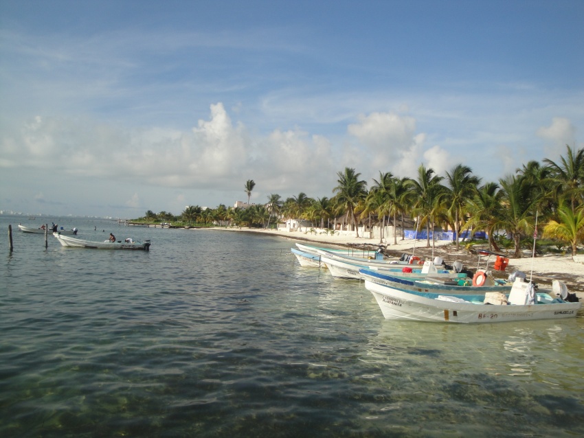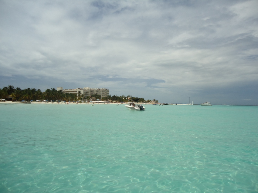 Endlich stiegen die vier aus dem Wasser und wir konnten den Rückweg antreten. Als sich das Boot in Bewegung setzte ging es mir gleich viel besser. Vor der Isla Mujeres schmeckte sogar das Bier schon wieder. Auf der Rückfahrt sahen wir noch ein paar Delphine. In der Flachen Lagune am Nordteil der Insel hielten wir an.