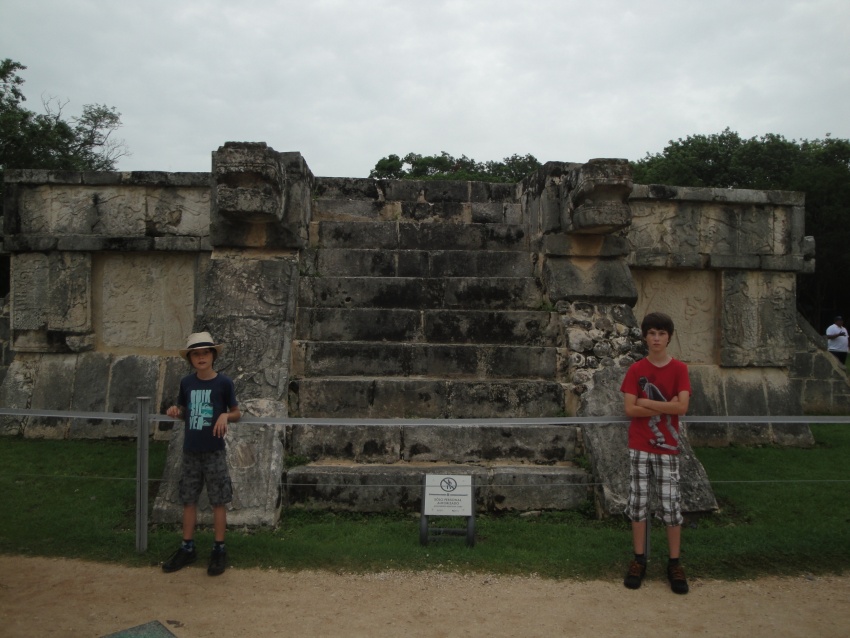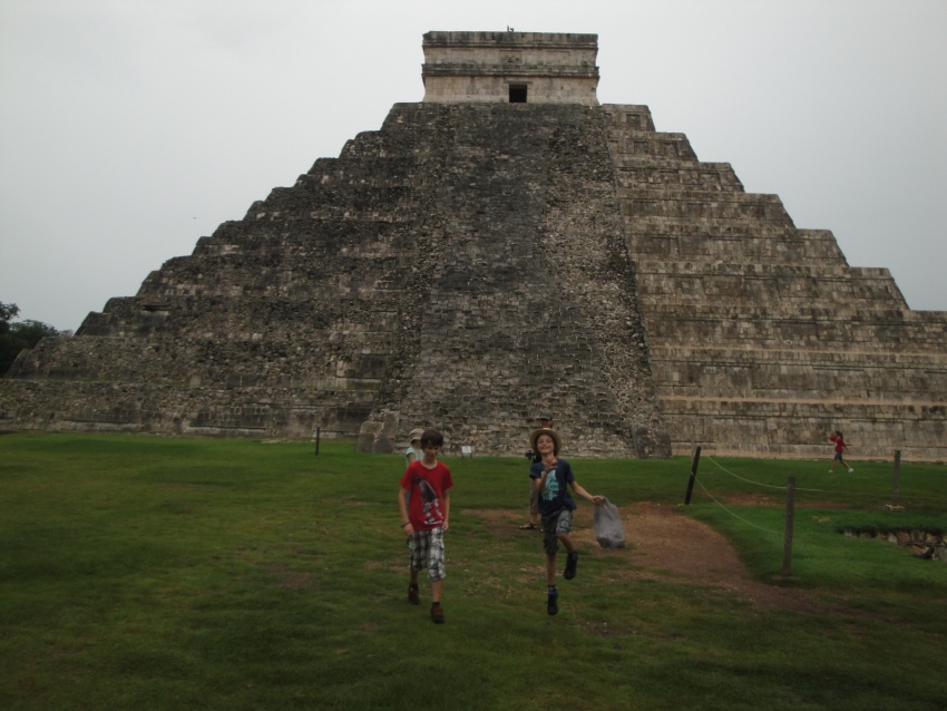 Unser erstes Ziel war heute Uxmal. Es war nicht allzuviel los. Im Bundesstaat Yukatan haben sie sich eine Besonderheit einfallen lassen um an das Geld der Touristen heranzukommen. Wer eine Sehenswürdigkeit besuchen möchte muss, neben der Parkgebühr, zweimal Eintritt zahlen. Ausländer zahlen rund das Dreifache der Einheimischen. Zuerst ist eine bundesstaatlich Abgabe von 125 Pesos pro Person zu bezahlen. Auch für die Kinder ist ein Kleinbetrag notwendig. Dann der eigentliche Eintritt von 57 Pesos. Natürlich an zwei verschiedenen Schaltern. Zuerst haben sie sich dumm gestellt, als wir so taten, als würden wir uns nicht auskennen, dann haben sie sie Sache untereinander ausgemacht. Sie sitzen in Uxmal auch nebeneinander, nur durch einen Schreibtisch getrennt. An die Touristenabzockerei muss man sich hier wohl gewöhnen.