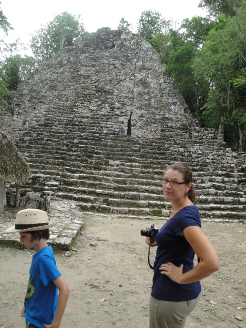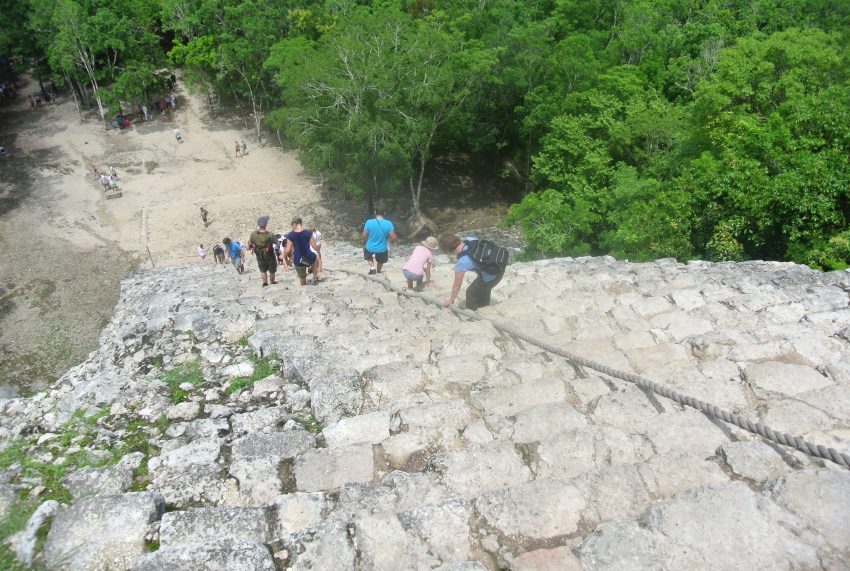 Imposant baut sich die 42 Meter hohe Pyramide Nohoch Mul vor uns auf.
