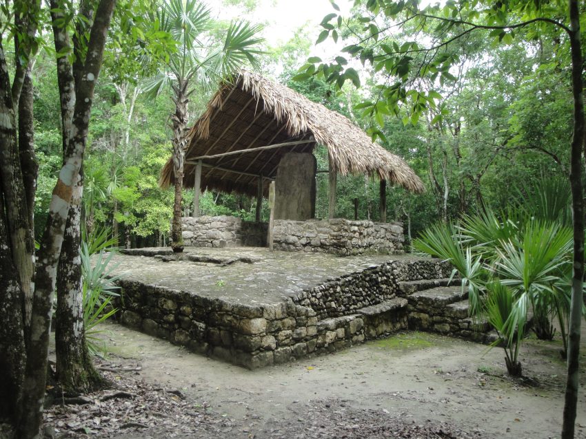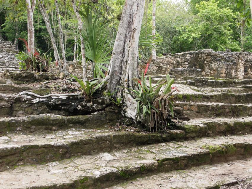 Coba liegt im Regenwald, alles ist von Bäumen umgeben und erst sehr wenig ausgebraben, natürlich ist auch viel verwachsen.