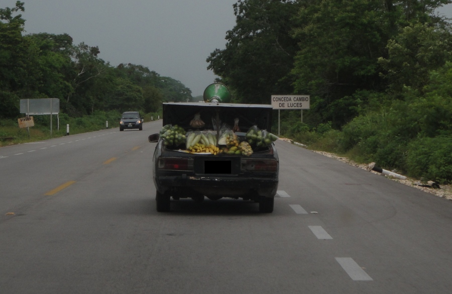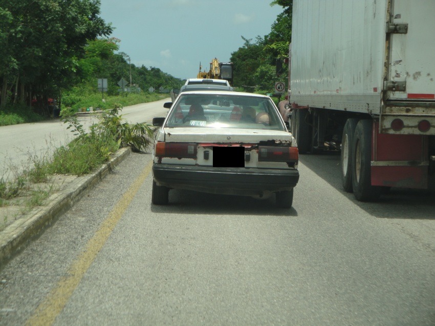 Wir fuhren weiter Richtung Tulum. Ein typisches Fahrzeug auf den Straßen von Mexico.