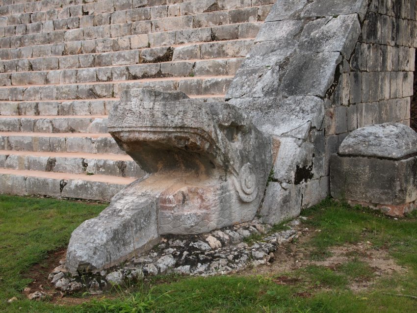 Gut vorstellbar wie hier die Priester aus dem Maul gekommen sind und die Treppe durch Feuerschalen auf den Chaac-Köpfen beleuchtet wurden. Das muss auf die Maya sehr einschüchternd und erhaben gewirkt haben.