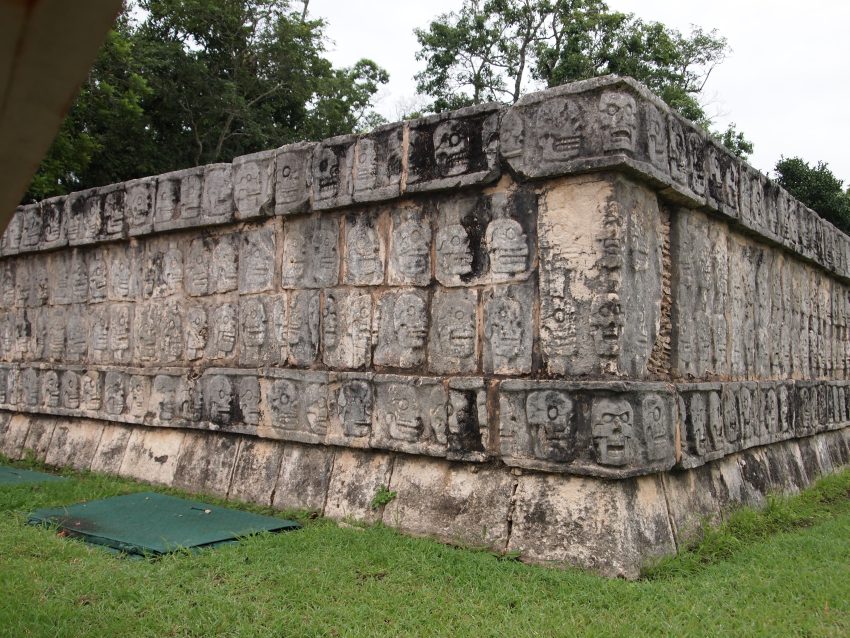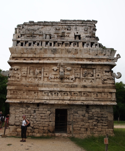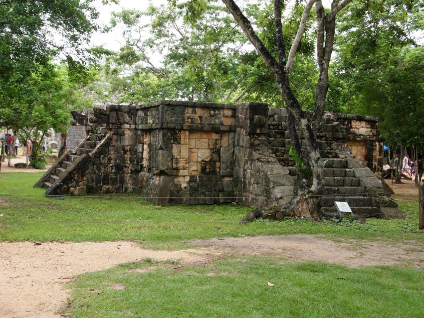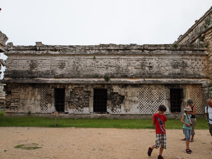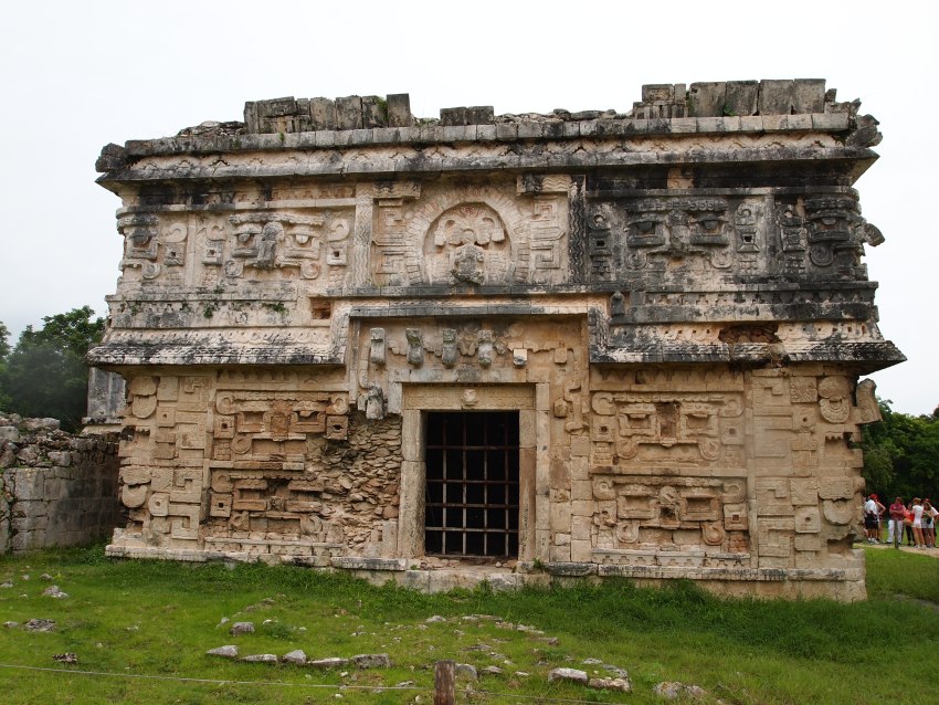 Seitlich befinden sich die am meisten verzierten Gebäude in Chichen Itza. La Inglesia (die Kirche) ist mit Chaak-Masken überseht.
