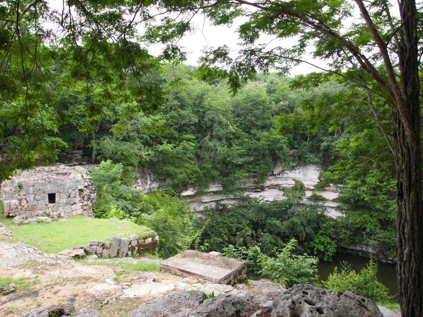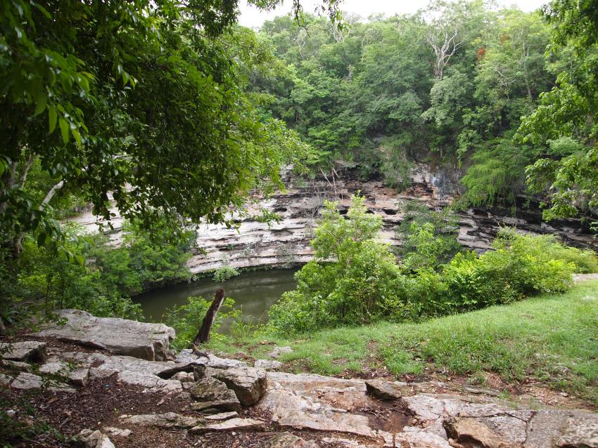 Wir besuchten als nächstes die Cenote Xtoloc, die zur Trinkwasserversorgung genutzt wurde. Sie war sehr verwachsen und es war nicht viel zu sehen, außer den Resten einer Sakbe.