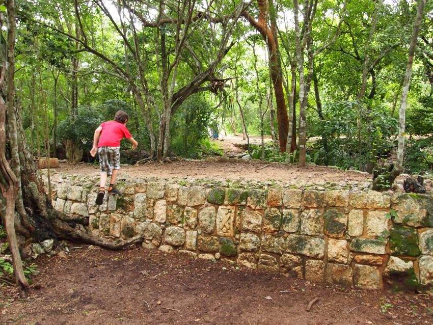 Der Regengott Chaac hat hier eine besondere Bedeutung, da die Wasserversorgung in Uxmal nicht über einen Fluss wie in Palenque oder Cenoten wie in den anderen Städten erfolgen kann. Das Wasser wurde hier über große unterirdische Zisternen gesammelt. Diese Zisternen sind noch immer vorhanden. Teilweise sind sie eingestürzt und die schmalen Löcher im Boden nur sehr unzureichend gesichert. Gar nicht so ungefährlich, vor allem mit Kindern, die überall herumrennen und alles erforschen wollen.