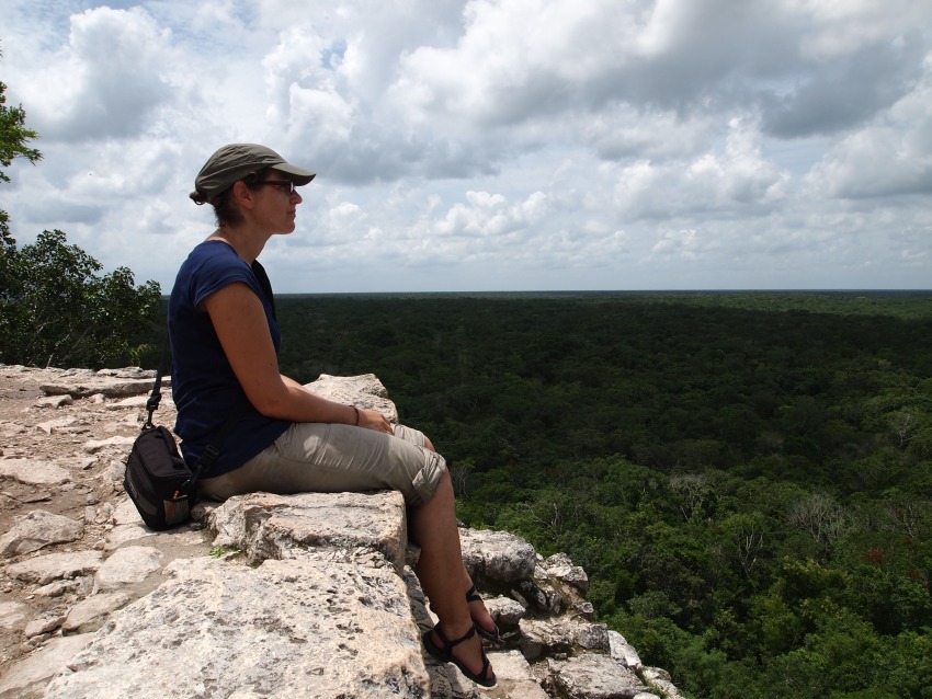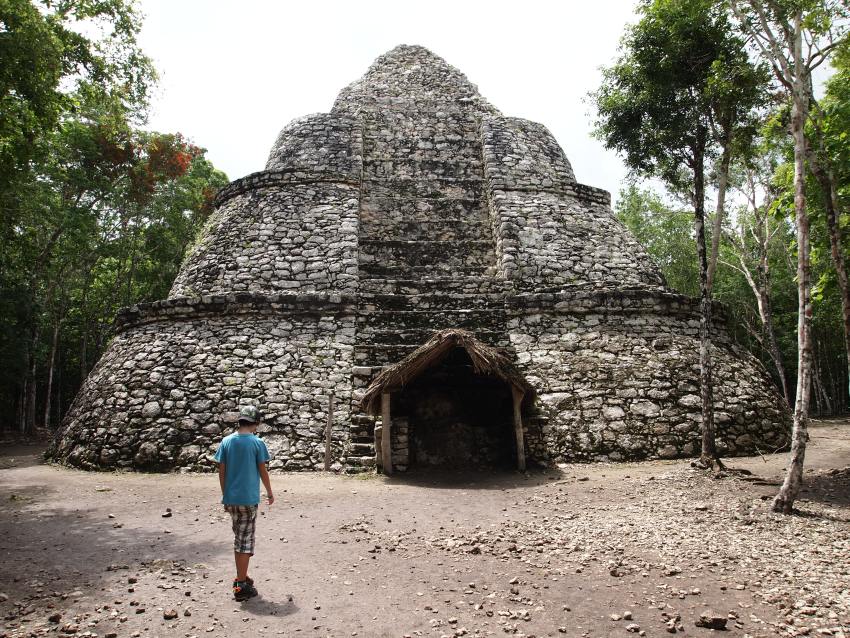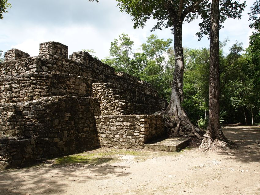Das Besondere ist ihre ovale Form, das kommt bei den Mayapyramiden nur sehr selten vor. Sie steht sehr imposant im Gelände.