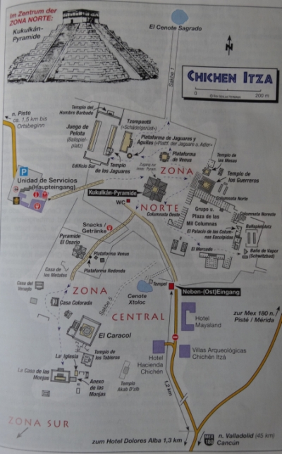 Interessante Bauwerke befinden sich am südlichen Ende der Zone. Das Haus der Nonnen ist das größte Bauwerk in Chichen Itza.