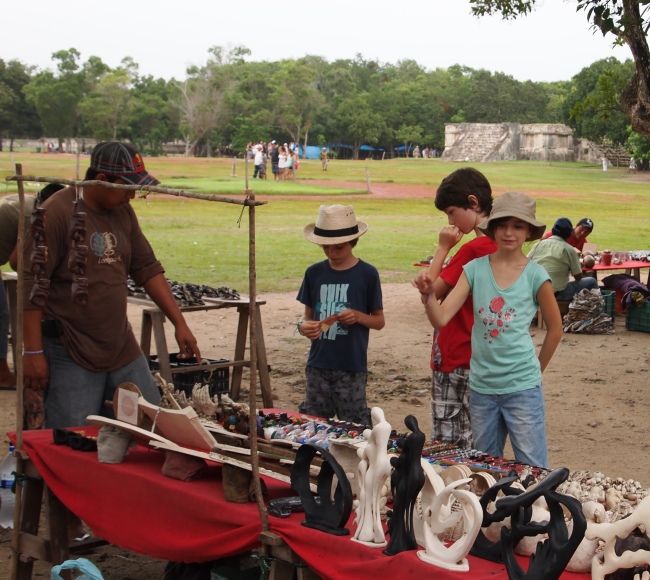 Als wir wieder den Hauptplatz bei der Kukulkan-Pyramide erreichten war er voll mit Menschen. Wir blieben noch etwas unter einem Baum sitzen und beobachteten die Szenerie.
