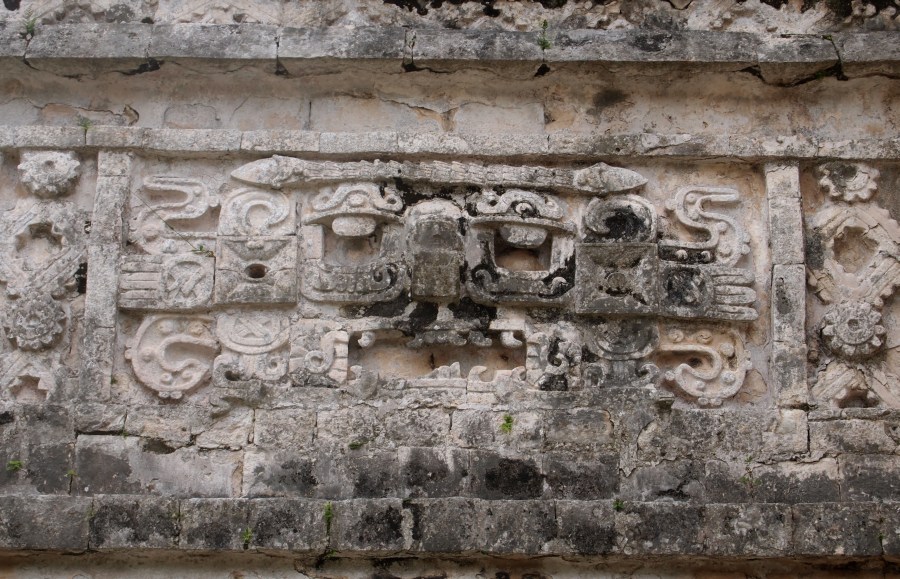 Rund 250 Chaak-Masken dürften das Bauwerk geschmückt haben. Ein großer Teil ist noch erhalten.