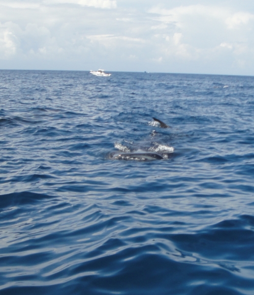 Sie waren überall. 10 bis 30 Tiere waren gleich neben unserem Boot zu sehen. Sie waren direkt neben dem Boot.