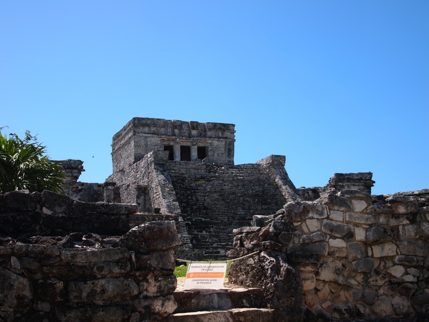 Das Besondere am Baustil der hier lebenden Mayas sind die hoch aufragenden Türme.
