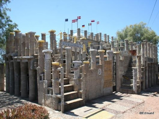 Im kleinen Verkaufsraum, der oberirdisch zur Schaumine gehört, können wir etwas trinken und natürlich Schmuck käuflich erwerden. Weiter geht es zum Astronomers Monument. Ein Opalsucher, der natürlich völlig unschuldig ins Gefängnis kam und dort ein paar Jahre verbringen musste, hat sich dieses Monument erbaut.