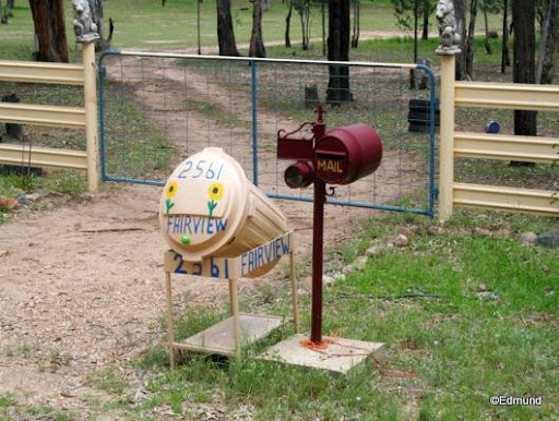 Die Fahrt nach Narrabri ist langweilig. Wir kaufen ein und nach kurzer Suche finde ich die Filiale des NRMA. Dort hole ich mir Karten von NSW - ich bin erstaunt, dass ich sie kostenlos erhalte. Auf der Fahrt zum Mt. Kaputar National Park kommen wir an vielen schönen Häusern mit großen Grundstücken und besonderen Briefkästen vorbei.
