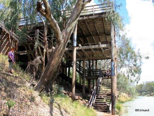 Kurz vor Bourke beginnt der Asphalt - welch eine himmlische Ruhe im Auto! Die Stadt ist wie ausgestorben, am dreistöckigen Kai spielen ein paar Kinder.