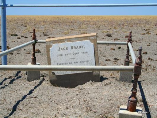 über das Barkly Tafelland. Der Grabstein Jack Bradys steht zwischen den Brunnen 3 und 4 auf Eva Downs.
