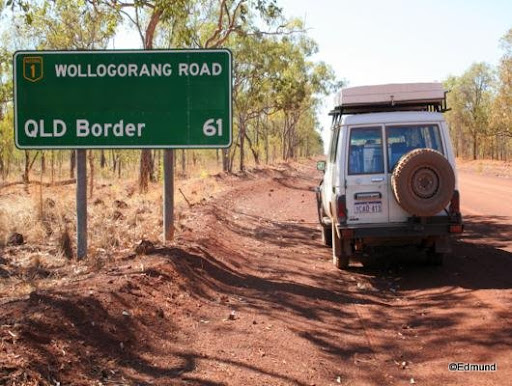 Nach weiteren 61 Kilometern erreichen wir die Grenze zu Queensland. Das Wollongorang Roadhouse ist, wie überall gemeldet wurde, geschlossen. Der Savannah Way ist entgegen der Aussagen in allen Führern sehr gut befahrbar. In Queensland ist er sogar stellenweise asphaltiert. Die Bäche und Flüsse sind zu dieser Jahreszeit alle ausgetrocknet und meist über betonierte Causeways zu durchqueren. Auch das Hells Gate Roadhouse, das wir nach weiteren 55 km erreichen, ist geschlossen und bietet nur noch Campingmöglichkeiten.
