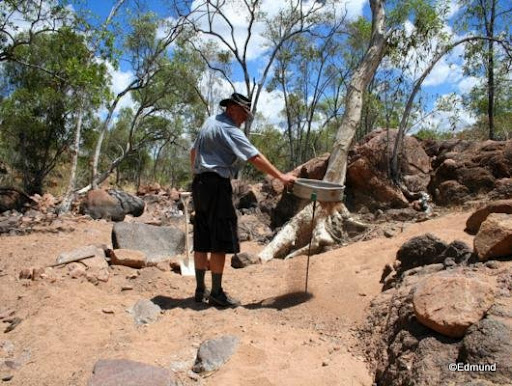 Wir wollten, wie bereits zweimal vorher, zu den Red Falls fahren, um zu sehen, ob die Verwüstungen, die wir beim letzten Mal dort vorgefunden hatten, vielleicht beseitigt sind. Den Umweg über Charters Towers machen wir, um einzukaufen. Dort ist jedoch Sonntags Ruhetag - alle Geschäfte sind geschlossen. Hatten wir total vergessen. An der Caltex-Tankstelle kann ich jedoch noch einen alten Fuel-Docker einlösen und kaufe mir endlich eine Zeitung.