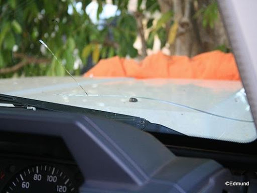 Um eventuellen Steinschlag aus dem Weg zu gehen, hilft nur, links ran, langsam mit ungefähr 50 km/h weiterfahren und in dem Moment, in dem das überholende Fahrzeug auf meiner Höhe ist, scharf zu bremsen. Wir fahren im übrigen im Höchstfall 80 km/h, weil das den Spritverbrauch in Grenzen hält.
