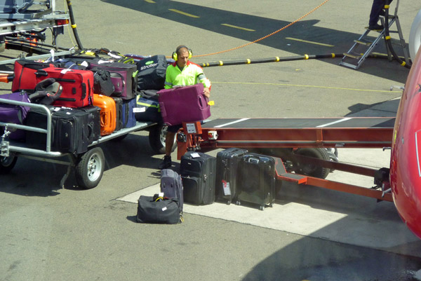 Als eine Stunde später das Gepäck eingeladen wird und das Boarding beginnt, sehe ich plötzlich meinen Koffer und kann zum ersten mal fotografieren, wie mein Koffer in ein Flugzeug geladen wird. Ein Highlight meines „Vielfliegerlebens“, was ist dagegen schon Kaviar in der First-Class?