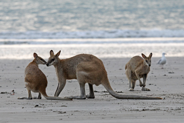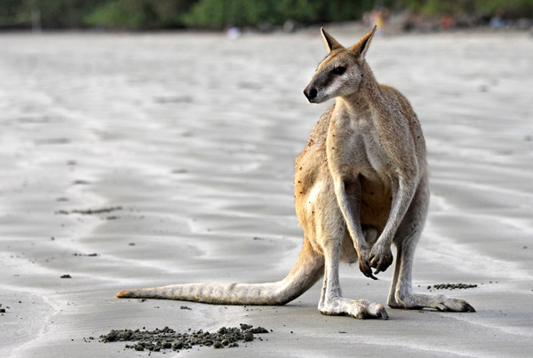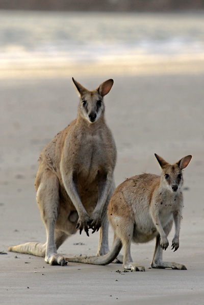 Schließlich hüpfen die Kängurus quer über den Strand an uns vorbei und verschwinden zwischen den Palmen. Es ist gerade einmal sechs Uhr, und wenn ich jetzt an den Strand gekommen wäre, hätte ich nichts gesehen. Da hat sich das frühe Aufstehen doch gelohnt.