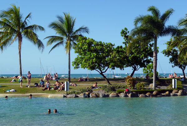Am Nachmittag spaziere ich dann durch Airlie Beach, das einen palmengesäumten Strand und direkt dahinter eine nette künstliche Lagune zu bieten hat.
