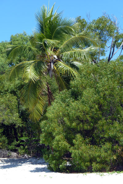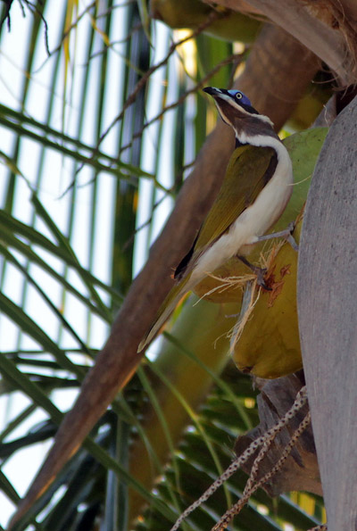 Nach der Schnorcheltour fahren wir in der Nachmittagssonne wieder zurück nach Airlie Beach und erreichen um fünf Uhr den Hafen. Kurze Zeit später bin ich wieder im Zimmer, und weil ich sowieso noch die nassen Badesachen drunter habe, hüpfe ich nochmal in den Pool. Während ich mich in der Abendsonne trocknen lassen, kommt die heimische Vogelwelt zu Besuch an die Palme neben dem Pool, um sich ihr Abendessen zu holen.