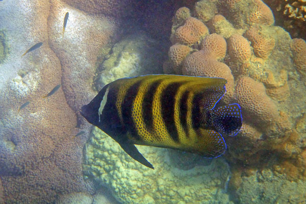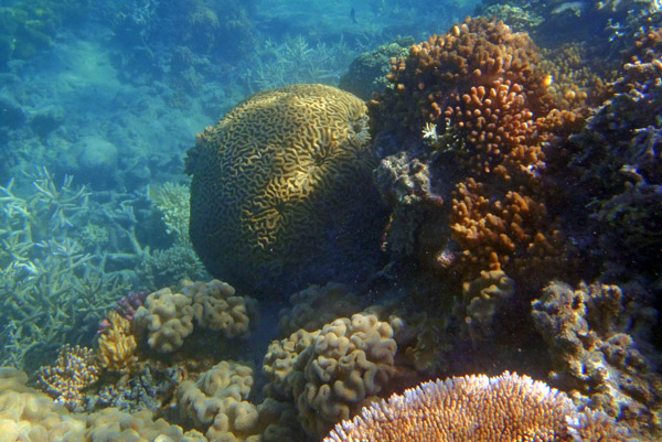 Zum Schluss steuern wir dann noch eine Bucht an, die sich zum Schnorcheln eignet. Nach einer lustigen Einweisung in die Benutzung der Schnorchel-Ausrüstung und die internationale Schnorchelzeichenkunde – angeblich muss man die Hand auf den Kopf legen, um zu zeigen, dass alles in Ordnung ist – platsche ich gemeinsam mit meiner kleinen Unterwasserkamera ins Wasser, ziehe die Maske über und schnorchele los. Das Wasser ist traumhaft klar, die Sonne leuchtet die Korallen und die Fische an, und ich schwimme immer weiter  und habe den Finger ständig am Auslöser.