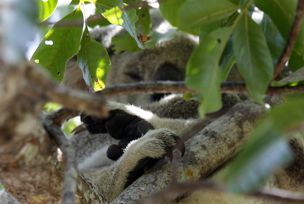 Ich habe jetzt gerade mal überlegt und bin mir gar nicht sicher, ob ich vorher überhaupt schon mal einen Koala gesehen habe. Falls ja, dann wahrscheinlich auch als unbewegliches Fellknäuel. Anscheinend verschlafen die ja den allergrößten Teil des Tages.