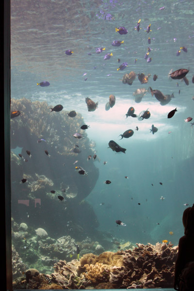 Für heute abend habe ich die Wildlife at Sunset Tour gebucht, und um halb sechs steige ich mit 19 anderen Besuchern und einer Rangerin in einen Bus, und wir fahren erst einmal einen Hügel etwa 15 Minuten entfernt an, von wo aus man einen schönen Blick auf den Sonnenuntergang hat. Dazu köpft die Rangerin dann auch noch mehrere Flaschen Sekt.