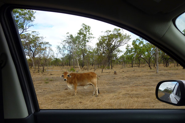 Bei dem Gedanken daran, wie nahe ich vorhin dem Killer-Kalb auf dem Waterfall Circuit war, wird mir ganz anders. Bei den nächsten Kuh-Kontakten bleibe ich lieber mal im Auto. Die Kuh auf dem Bild fragt sich vermutlich im Gegenzug, wer denn die blöde Kuh ist, die im Micra durch die Gegend fährt und "Highway to Hell" hört.