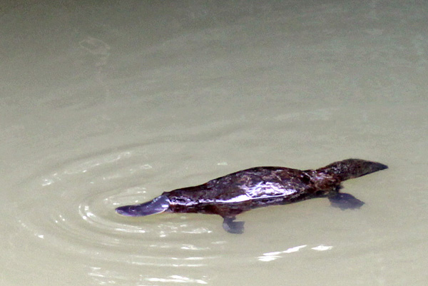 Während ich kurz darauf den kleinen Ort erkunde, spielt das Wetter wieder verrückt und bietet vom Regenschauer bis zu strahlendem Sonnenschein alles auf, was man hier in den Tablelands so erwarten kann. Yungaburra ist nett, es gibt viele Holzhäuser, und sogar eine kleine Beobachtungsplattform über dem Fluss wurde eingerichtet, um Schnabeltiere beobachten zu können. Und netterweise paddelt mir auch eins dieser Schnabeltiere vor die Linse.