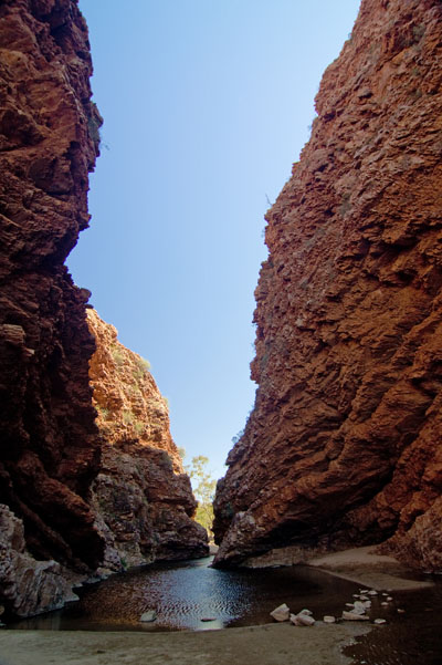 Der nächste Stopp ist am Standley Chasm, wo zur Mittagszeit die Sonne in die enge Schlucht fallen soll. Dafür sind wir aber zu früh dran. Trotzdem ist die kurze Wanderung zur Schlucht sehr schön und bietet mal wieder viele Fotomotive.