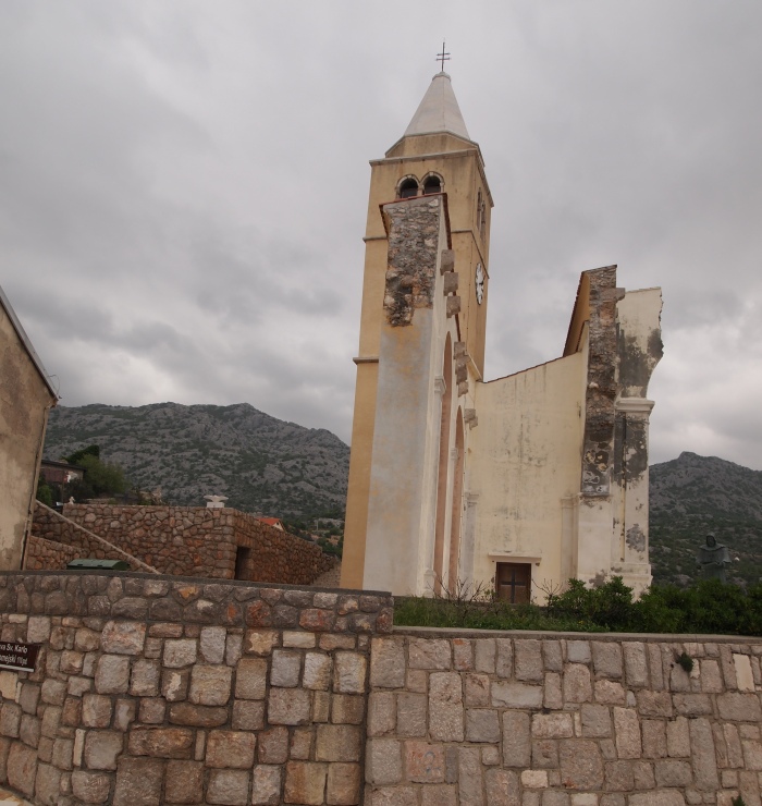 Beim Hafen steht eine seltsame Kirche, bzw. die Reste davon. Es stellt sich die Frage, wurde die Kirche wegen der Straße geviertelt oder war sie schon vorher zerstört?