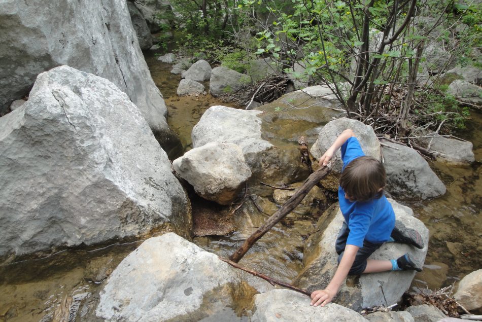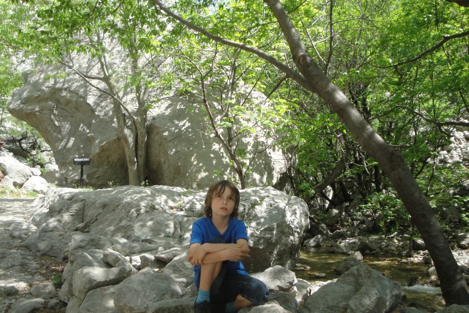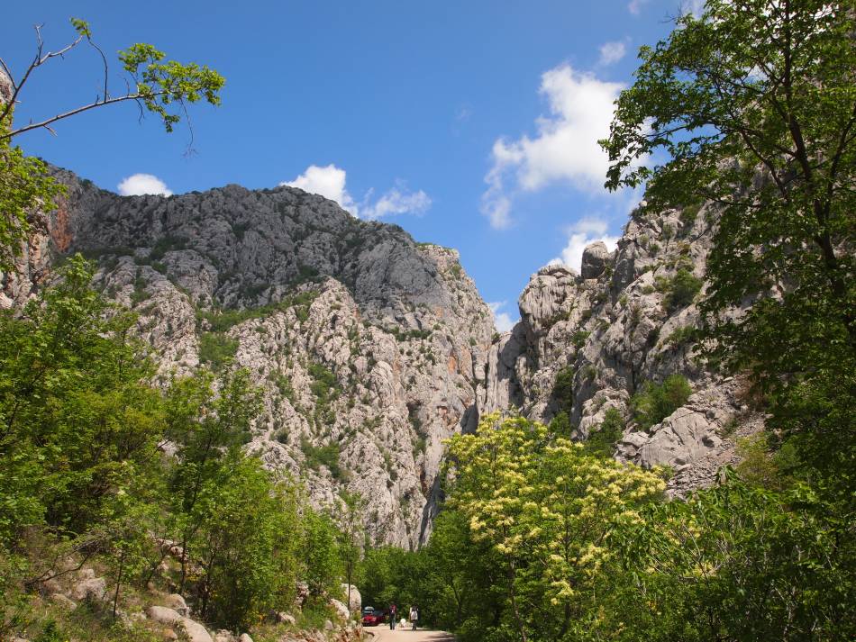 Im Ort Starigrad biegt man rechts zum Eingang in die großen Paklenica Schlucht ab. Als wir den Eintritt bezahlen wollten, konnte der Parkmitarbeiter nicht herausgeben. So bezahlten wir nur für drei Erwachsene und ein Kind. Die Hälfte für das zweite Kind hätte ich bezahlen können. Dieses Geld wollte er nicht.