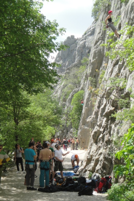 Nachdem wir den Wanderweg in die Schlucht betreten hatten, war uns sofort klar, warum heute so viel los ist. Jeder Quadratmeter der Felswände war mit Kletteren besetzt. Auch am Boden wimmelte es nur so vor Leuten.