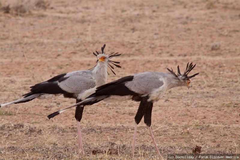 Dieses Sekretär-Pärchen hat mir eine Weile seine Jagdmethoden vorgeführt. Sieht "lustig" aus, wie sie ihre Opfer tot trampeln.