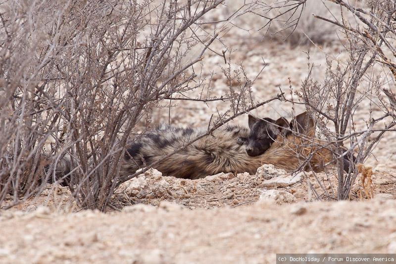 Danach kam das erste echte Highlight des Tages: EIne Hyänenfamilie mit drei oder vier Jungen lagerte in einem Gebüsch direkt neben der Straße.