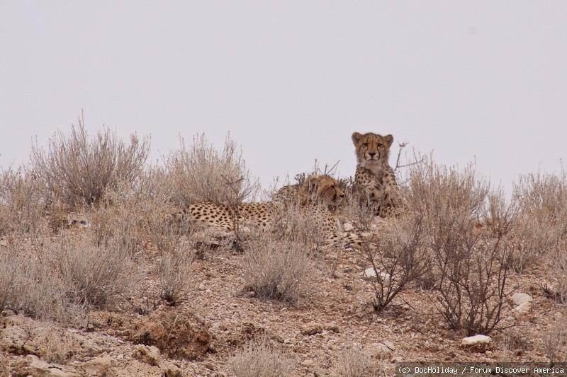 Genau, weil 5 oder 6 km weiter drei Kätzchen in einiger Entfernung oben auf einem Hügel saßen. Erwartungsgemäß waren es keine Leoparden sondern Geparden.