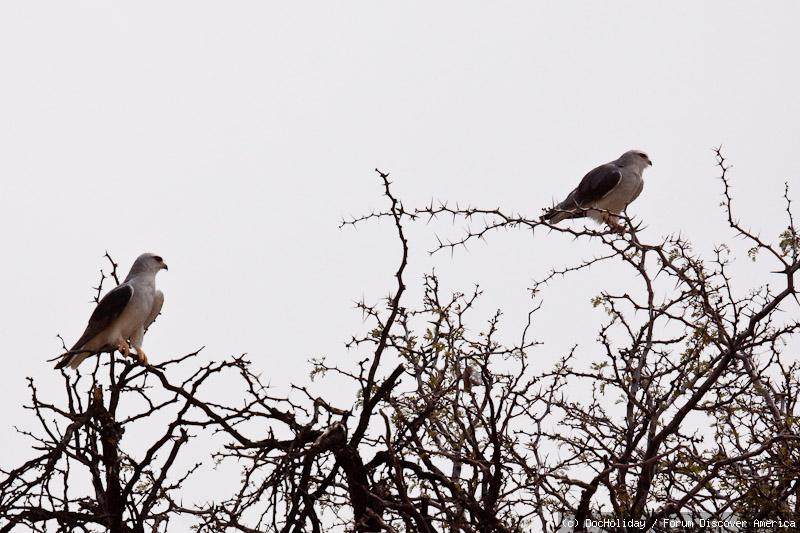 Wenn mich nicht alles täuscht, müssten das Gleitaare (Black shouldered Kites) sein.