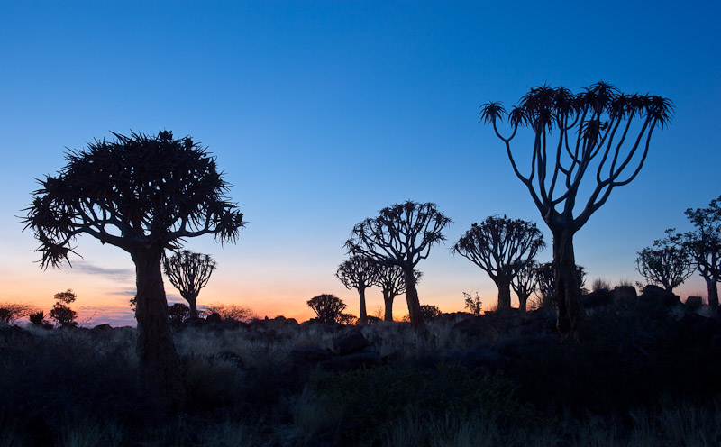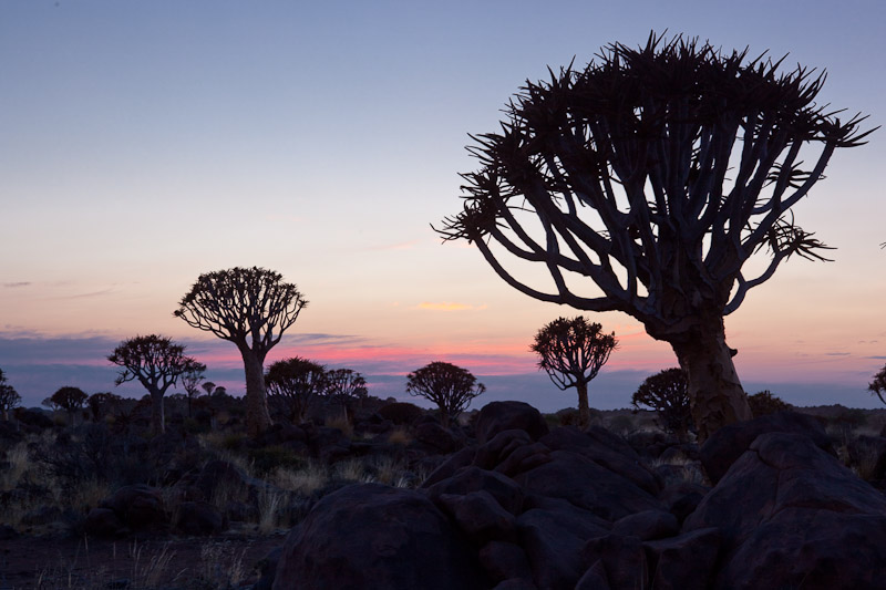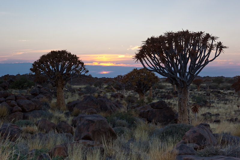 Auch heute ging wieder die Sonne auf, diesmal nicht "überraschend" sondern lange erwartet. Ich war schon fast eine Stunde vor Sonnenaufgang wieder im Quivertree Forest und hatte ihn diesmal (fast) für mich alleine.