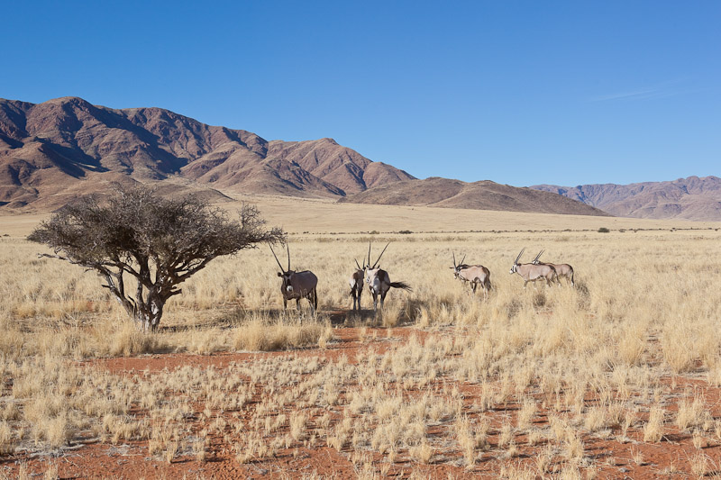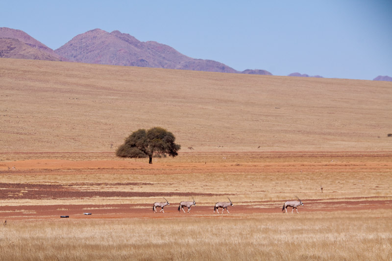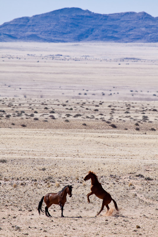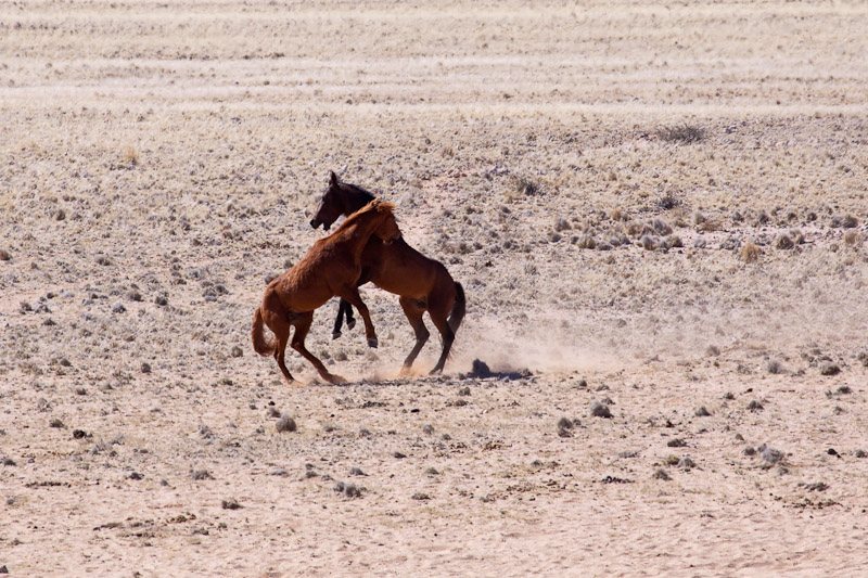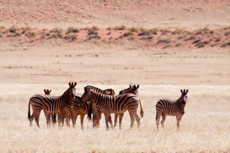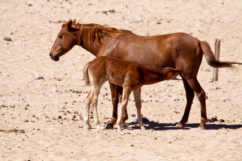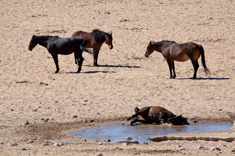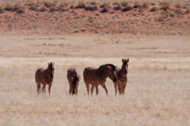 Eigentlich unglaublich, dass die in dieser lebensfeindlichen Umgebung überleben können. Wenn man sie mitten in der Wüste sieht, fällt es fast noch schwerer es zu glauben als wenn man nur darüber liest. Es ist gnadenlos heiß und trocken hier, es gibt Hyänen und den einen oder anderen Leopard und doch schaffen sie es. Die Sterblichkeit bei den Fohlen ist allerdings extrem hoch, so dass die Herde nur langsam wächst.